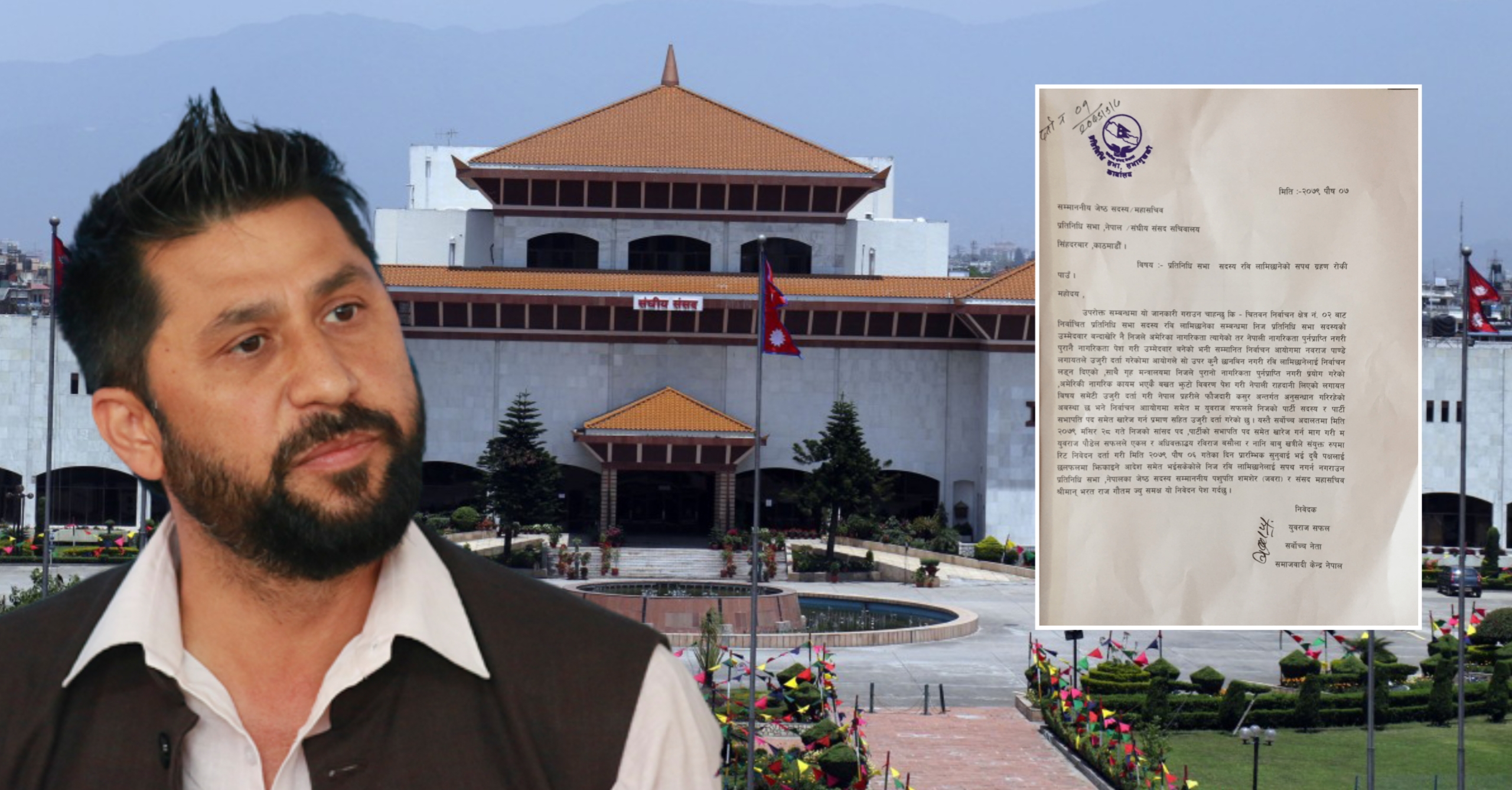 समाजवादी केन्द्र नेपालका नेता युवराज सफलले बिहीबार रवि लामिछानेलाई प्रतिनिधिसभा सदस्य पदको शपथ नगराउन मागसहित निवेदन दिएका हुन् ।