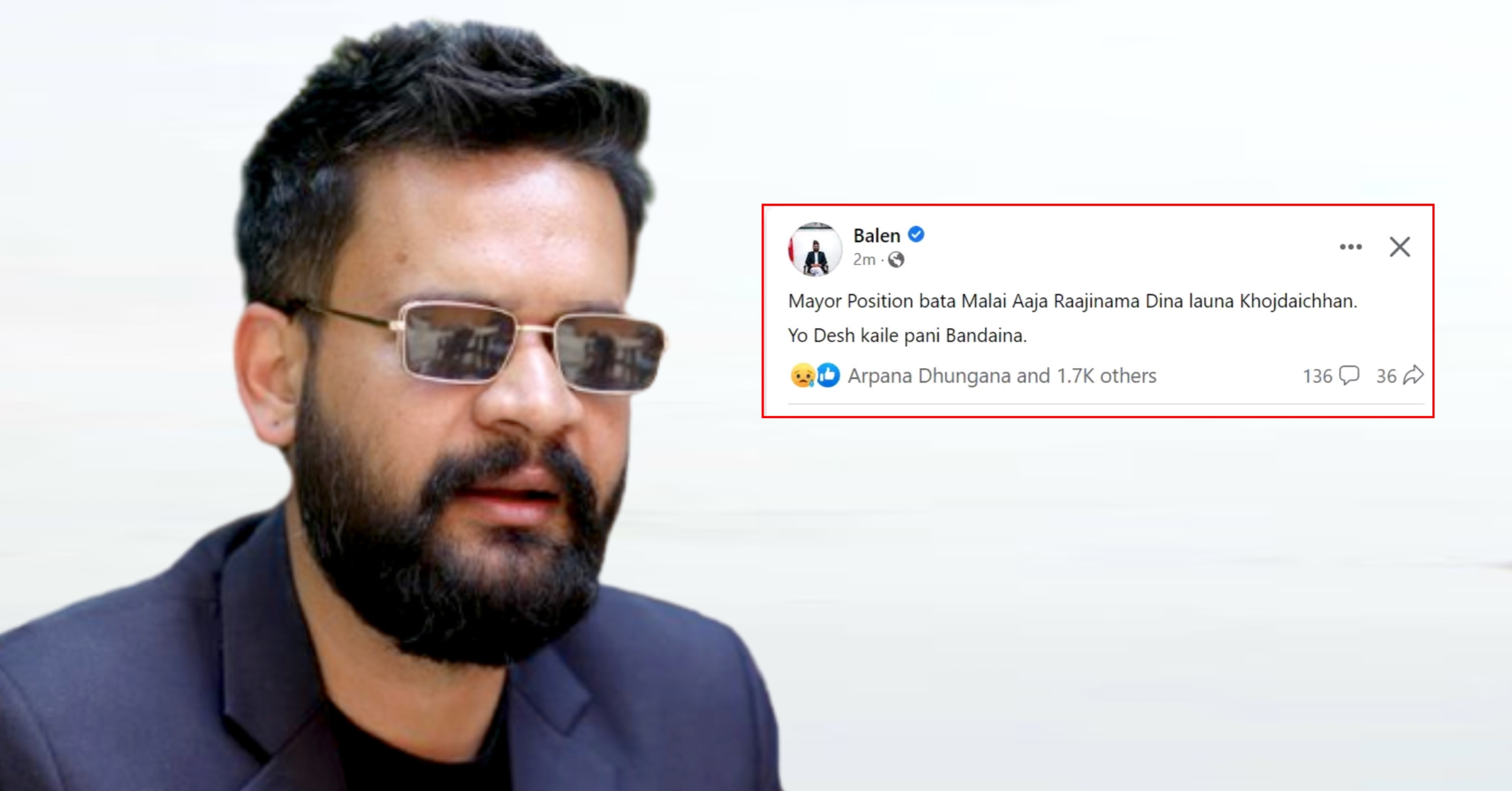 उनले लेखेका छन्, ‘मेयर पद बस्दा मलाई आज राजीनामा दिन लगाउन खोज्दैछन्। यो देश कहिले पनि बन्दैन।’