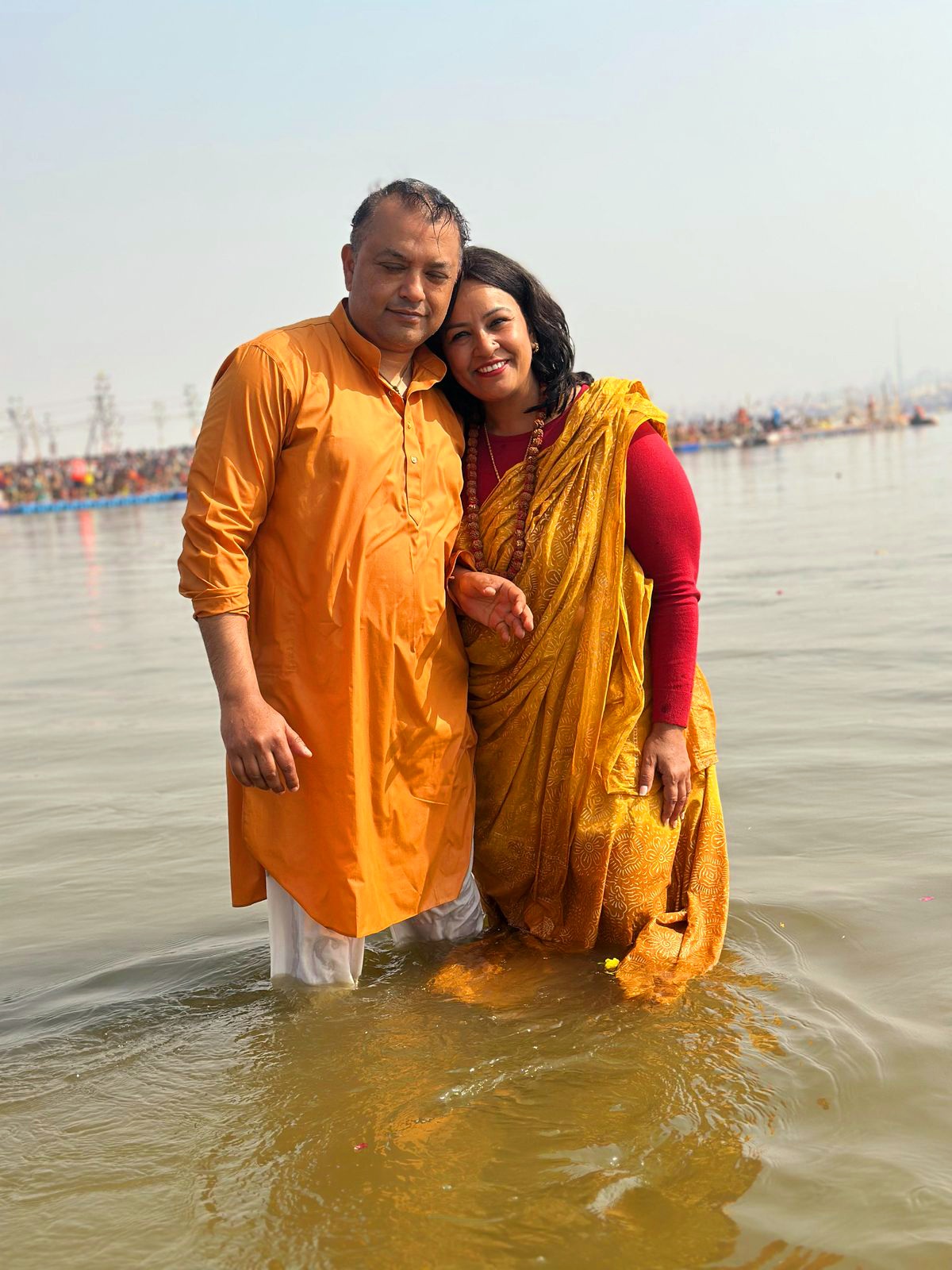 प्राचीन धार्मिक परम्पराअनुसार गंगा, यमुना तथा अदृश्य सरस्वती नदीको संगमस्थलमा आयोजित महाकुम्भ महोत्सवमा सहभागी हुँदै, थापा दम्पतीले श्रद्धापूर्वक स्नान गरेका हुन्।