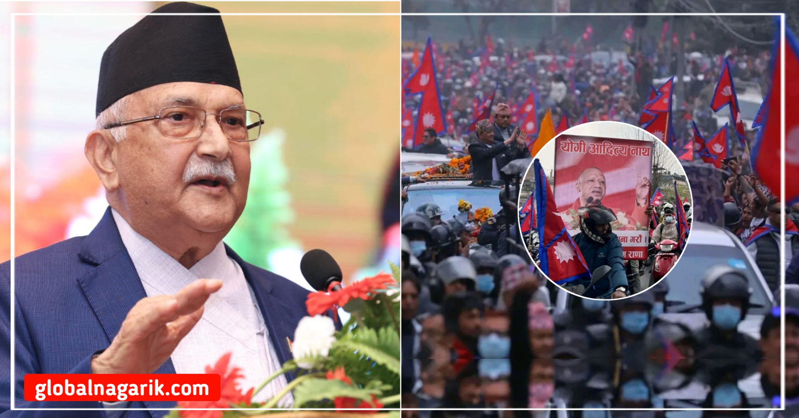 पूर्वराजा ज्ञानेन्द्र शाहको स्वागतका क्रममा आइतबार भारत उत्तर प्रदेशका मुख्यमन्त्री योगी आदित्यनाथको तस्वीर प्रयोग भएको थियो । त्यसप्रति लक्षित गर्दै प्रधानमन्त्री ओलीले भने, ‘एउटा जुलुस निकाल्नु पर्यो भने विदेशीको तस्वीर राख्नुपर्ने नाजुक अवस्थामा हामी छैनौं । अलोकतान्त्रिक, प्रणाली विरोधी र असंवैधानिक कुराहरूमा लाग्ने हामीलाई फुर्सद छैन।’