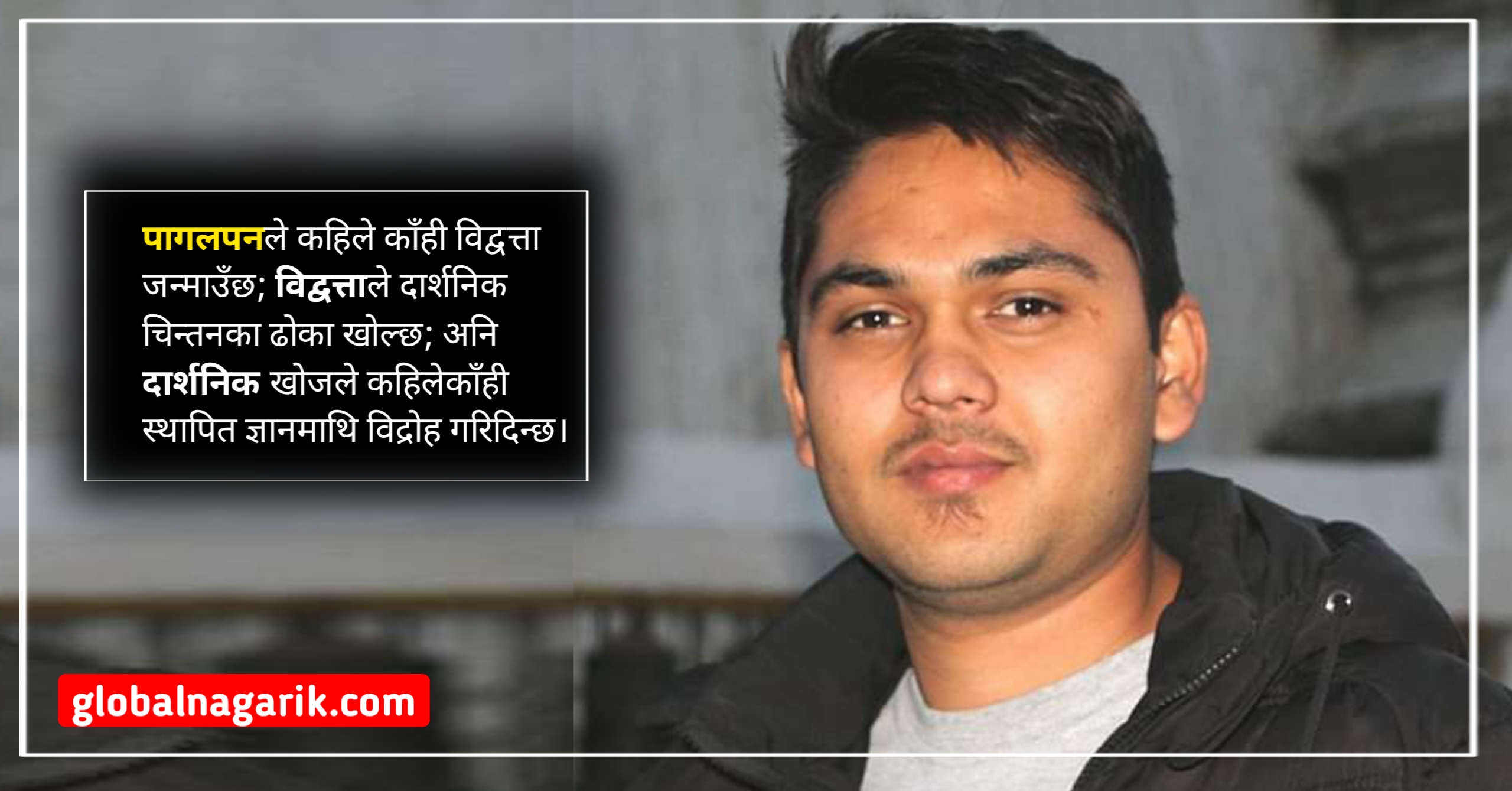 मानिसको बौद्धिक यात्रा फरक किसिमले अगाडि बढ्न पुग्छ। कतै समाजले ‘पागल’ को रूपमा चिन्ने ती व्यक्ति नै कहिलेकाहीं यथार्थको गहिराइमा पुग्छन्। कतै ‘विद्वान’ ले ज्ञानको उज्यालो फैलाउँछन्; अनि कतै ‘दार्शनिक’ ले प्रश्नहरूको अग्निपथमा यात्रा गर्छन्। यिनै तीन पात्र – पागल, विद्वान र दार्शनिक; मानव चेतनाको अनौठा तर घनिष्ठ अनुहार हुन्। पागललाई प्रायः समाजले गम्भीरतापूर्वक नलिने गर्दछ। तर पागलपन कहिले काँही त्यो स्वतन्त्रता हो, जसले पारम्परिक बन्धनहरू भत्काउँछ। सामाजिक, नैतिक र बौद्धिक सीमाहरूलाई बेवास्ता गरेर पागलले यथार्थलाई यस्तो कोणबाट हेर्छ, जसलाई सामान्य चेतनाले समाउन सक्दैन। उनमा तर्कको सुदृढ श्रृंखला नभए पनि अनुभूतिका तीव्रता हुन्छ; परम्परागत ज्ञान नमान्ने साहस हुन्। विद्वानहरू ज्ञानको संरचनागत विकासका कर्ता हुन्। उनीहरूले अध्ययन, अनुसन्धान र विश्लेषणद्वारा नयाँ तथ्यहरू उजागर गर्छन्। विद्वान अनुशासित हुन्छन्; तर्क, प्रमाण र सिद्धान्तहरूमा आधारित भएर काम गर्छन्। उनीहरूको प्रयत्नले ज्ञानको धरोहर सुरक्षित रहन्छ, पुस्ता दर पुस्ता मानव सभ्यताको गहिराइ बढ्छ। विद्वान ज्ञानका बोटबिरुवा हुर्काउने मालीजस्तै हुन्। दार्शनिकहरू तिनीहरू हुन्, जो ज्ञानको भुमरीलाई केवल संकलन गर्दैनन्, त्यसमा गहिरो प्रश्न उठाउँछन्। ‘के हो सत्य ?’, ‘किन अस्तित्व छ ?’ जस्ता गहिरा प्रश्नहरू उनीहरूको यात्रा हुन्। दार्शनिकहरूका लागि ज्ञान एउटा निष्कर्ष होइन, निरन्तर खोज हो। उनीहरू न त केवल परम्परागत ज्ञानलाई स्वीकार्छन्, न त केवल नविनताको पछि लाग्छन्; बरु, जिज्ञासाको दीप जलाएर हर बिन्दुमा सत्यताको खोजी गर्छन्। पागल, विद्वान र दार्शनिकलाई छुट्टाछुट्टै पहिचान दिन सकिए तापनि, तिनीहरूबीच गहिरो अन्तर्क्रिया हुन्छ। कहिलेकाहीं पागलको स्वतन्त्रता विद्वानको ज्ञानमा नयाँ आयाम थप्छ। कहिले विद्वानकै अध्ययन दार्शनिकलाई नयाँ प्रश्नहरूतर्फ डोर्याउँछ भने कतिपय अवस्थामा दार्शनिकको गहिरो चिन्तन नै पागलपनको झल्को दिन्छ। तीनै धाराले मानव चेतनालाई फरक तर महत्वपूर्ण दिशामा अग्रसर गराउँछन्।
