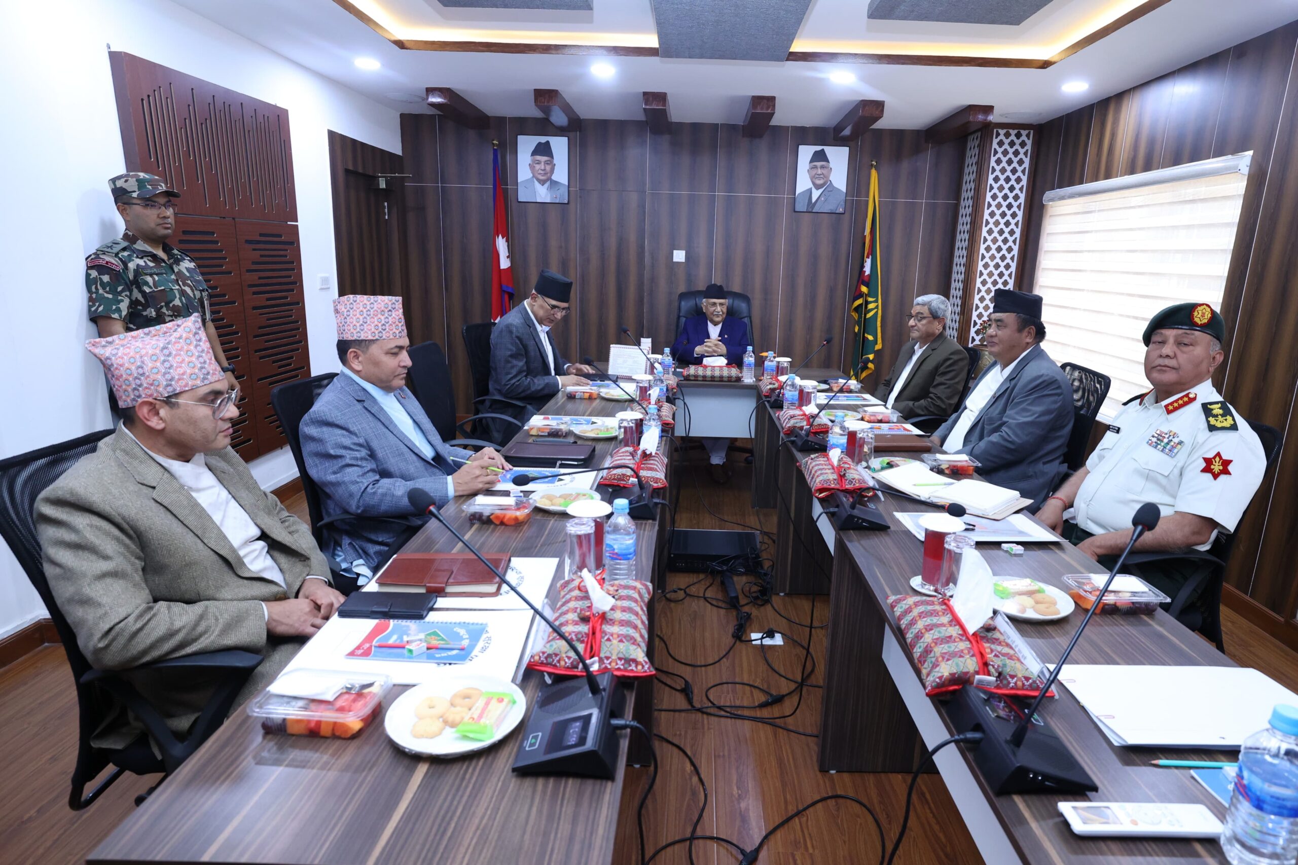 बैठकमा उपप्रधान तथा अर्थमन्त्री विष्णु पौडेल, गृहमन्त्री रमेश लेखक, मुख्य सचिव एकनारायण अर्याल, तथा प्रधानसेनापति अशोकराज सिग्देललगायत उच्च सुरक्षा अधिकारीहरूको उपस्थिति रहेको छ।