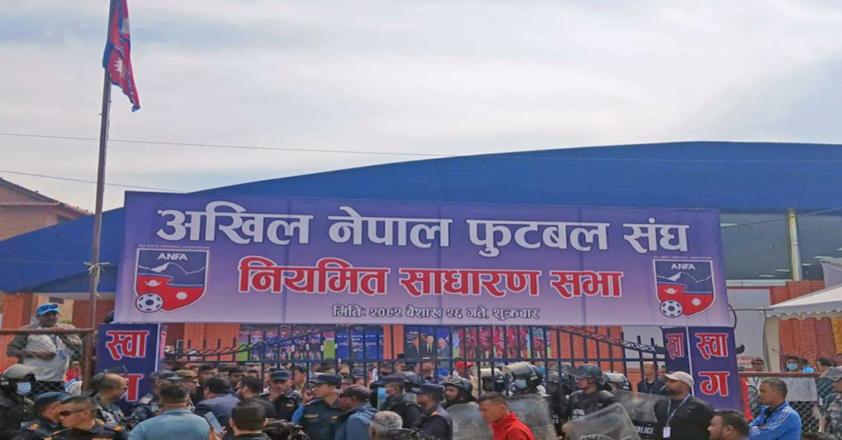 काठमाडौं । अखिल नेपाल फुटबल संघ (एन्फा) को साधारण सभामा पूर्व अध्यक्ष गणेश थापालाई प्रवेशमा रोक लगाएपछि स्थिति तनावग्रस्त भएको छ।