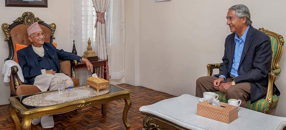 काठमाडौँ । प्रधानमन्त्री एवं नेकपा एमालेका अध्यक्ष केपी शर्मा ओली र नेपाली कांग्रेसका सभापति शेरबहादुर देउवाबीच आज साँझ भेटवार्ता हुने भएको छ। प्रधानमन्त्रीको सरकारी निवास बालुवाटारमा सोमबार साँझ ६ बजेका लागि बोलाइएको मन्त्रिपरिषद् बैठकअघि दुबै नेताबीच संवाद हुन लागेको हो।