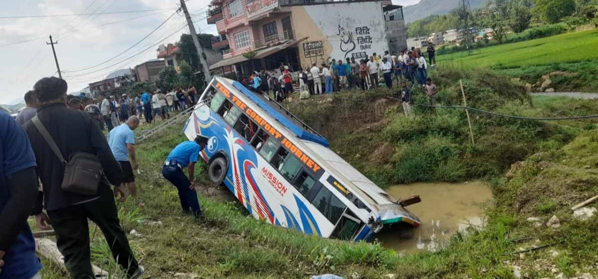 काठमाडौं । तनहुँको म्याग्दे गाउँपालिका–४ स्थित घुम्तीमा मंगलबार दिउँसो एक यात्रुबाहक बस दुर्घटना हुँदा २२ जना यात्रु घाइते भएका छन्। पोखराबाट सुर्खेततर्फ जाँदै गरेको ना. ७ ख. ६८४१ नम्बरको बस अनियन्त्रित भई सडकबाट करिब २० मिटर तल खसेको हो।