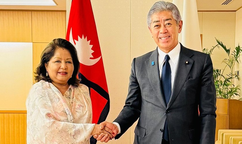 काठमाडौं । परराष्ट्रमन्त्री डा. आरजु राणा देउवाले जापानको औपचारिक भ्रमणका क्रममा बिहीबार टोकियोस्थित जापानी विदेश मन्त्रालयमा जापानका परराष्ट्रमन्त्री महामहिम इवाया ताकेशीसँग औपचारिक भेटवार्ता गरेकी छन् । भेटवार्ता फलदायी र सकारात्मक भएको मन्त्री राणाले बताएकी छन् ।