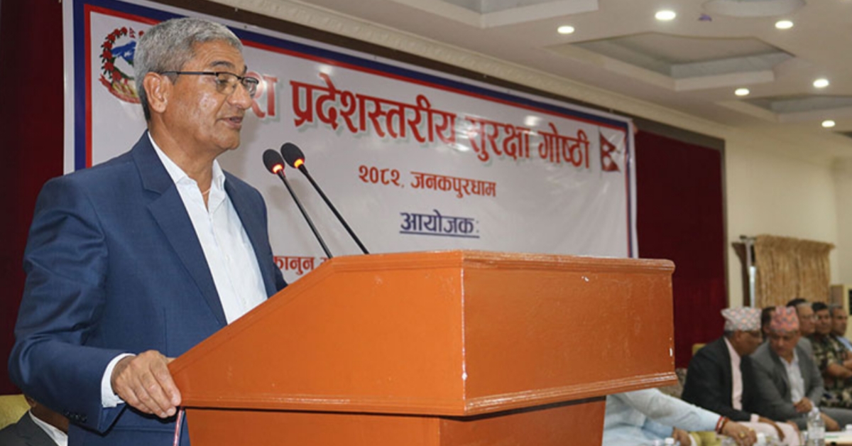 शुक्रबार जनकपुरमा आयोजित मधेश प्रदेशस्तरीय सुरक्षा गोष्ठीको उद्घाटन गर्दै मन्त्री लेखकले शान्ति सुरक्षा विना सुशासन सम्भव नहुने बताए। उनले सबै सुरक्षा निकायलाई जिम्मेवार, अनुशासित र निष्ठापूर्वक आफ्नो कर्तव्य निर्वाह गर्न निर्देशन दिए।