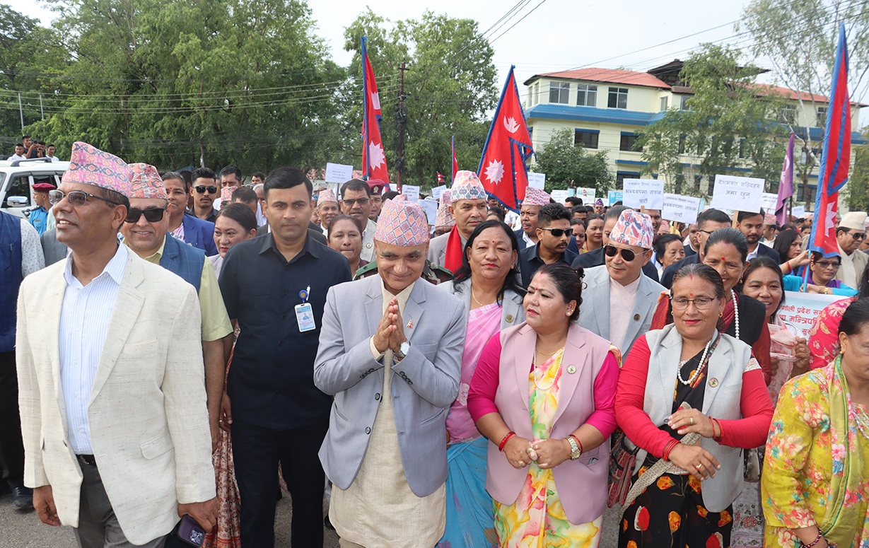 काठमाडाैं । सुर्खेतको कर्णाली प्रदेशमा १८औं गणतन्त्र दिवस बिहीबार विविध कार्यक्रमका साथ भव्य रूपमा मनाइएको छ। प्रदेश सरकारको आयोजनामा वीरेन्द्रनगर नगरपालिकाको मुख्य बजार क्षेत्रबाट र्‍याली निकाल्दै औपचारिक समारोहको आयोजना गरिएको हो।