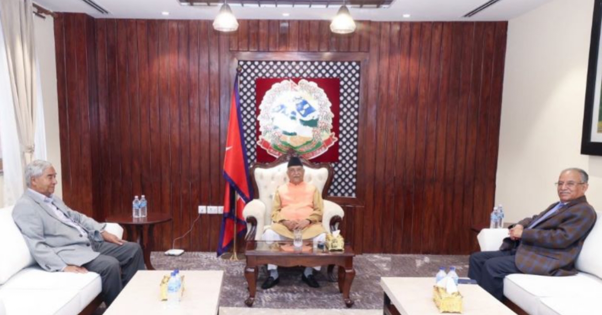प्रधानमन्त्री तथा मन्त्रिपरिषद्को कार्यालय, सिंहदरबारमा आज अपराह्न ४ बजेका लागि तय गरिएको उक्त बैठकमा प्रधानमन्त्री एवं नेकपा (एमाले)का अध्यक्ष केपी शर्मा ओली, नेपाली कांग्रेसका सभापति शेरबहादुर देउवा र नेकपा (माओवादी केन्द्र)का अध्यक्ष पुष्पकमल दाहाल ‘प्रचण्ड’ सहभागी हुने प्रधानमन्त्रीको सचिवालयले जानकारी दिएको छ।