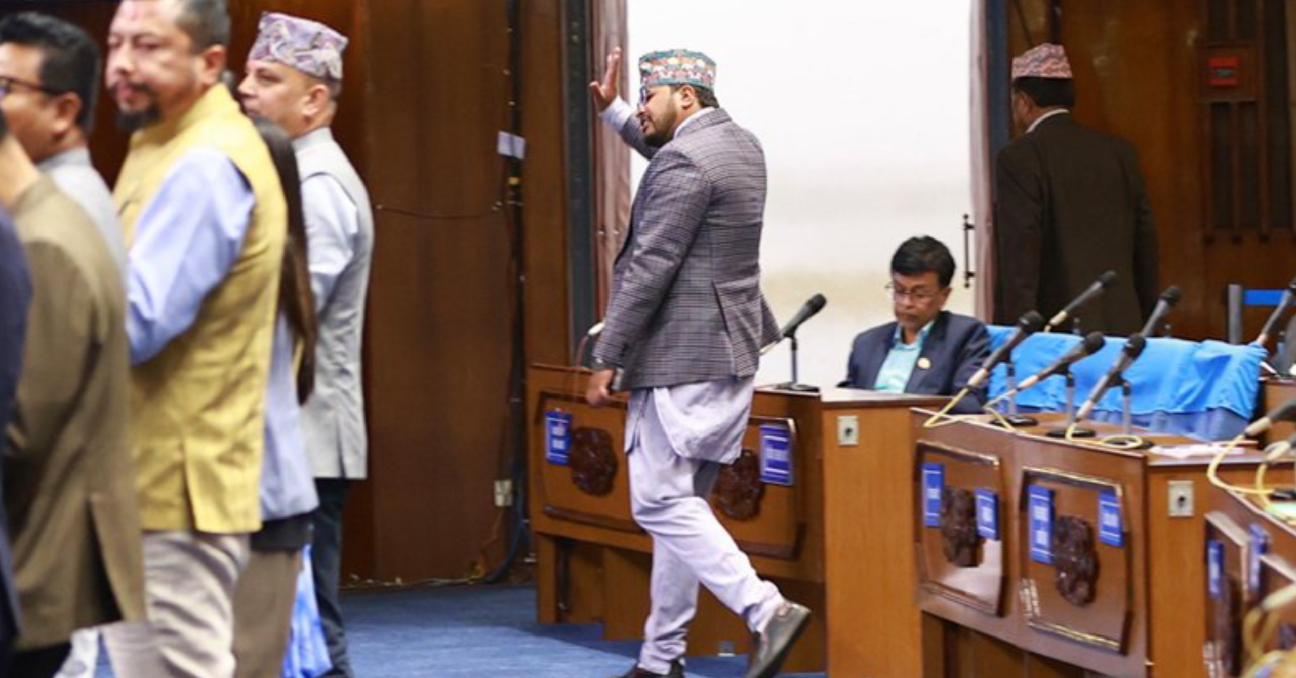 सदन सञ्चालनको शैलीप्रति आपत्ति जनाउँदै राप्रपाका सांसदहरु बैठक चलिरहेकै क्रममा बाहिरिएका हुन्।