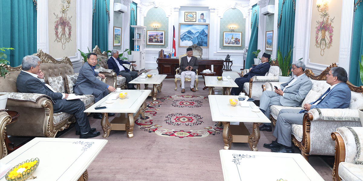 प्रधानमन्त्री तथा मन्त्रिपरिषद्को कार्यालय सिंहदरबारमा प्रधानमन्त्री ओली, कांग्रेस सभापति शेरबहादुर देउवा र माओवादीका अध्यक्ष पुष्पकमल दाहालसहित शीर्ष नेताहरुबीच भेटवार्ता जारी छ।