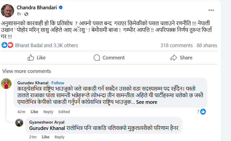 उनको चेतावनीसँगै कांग्रेसभित्र अनुशासन र असहमतिका विषयमा थप बहस चर्किने संकेत देखिएको छ।