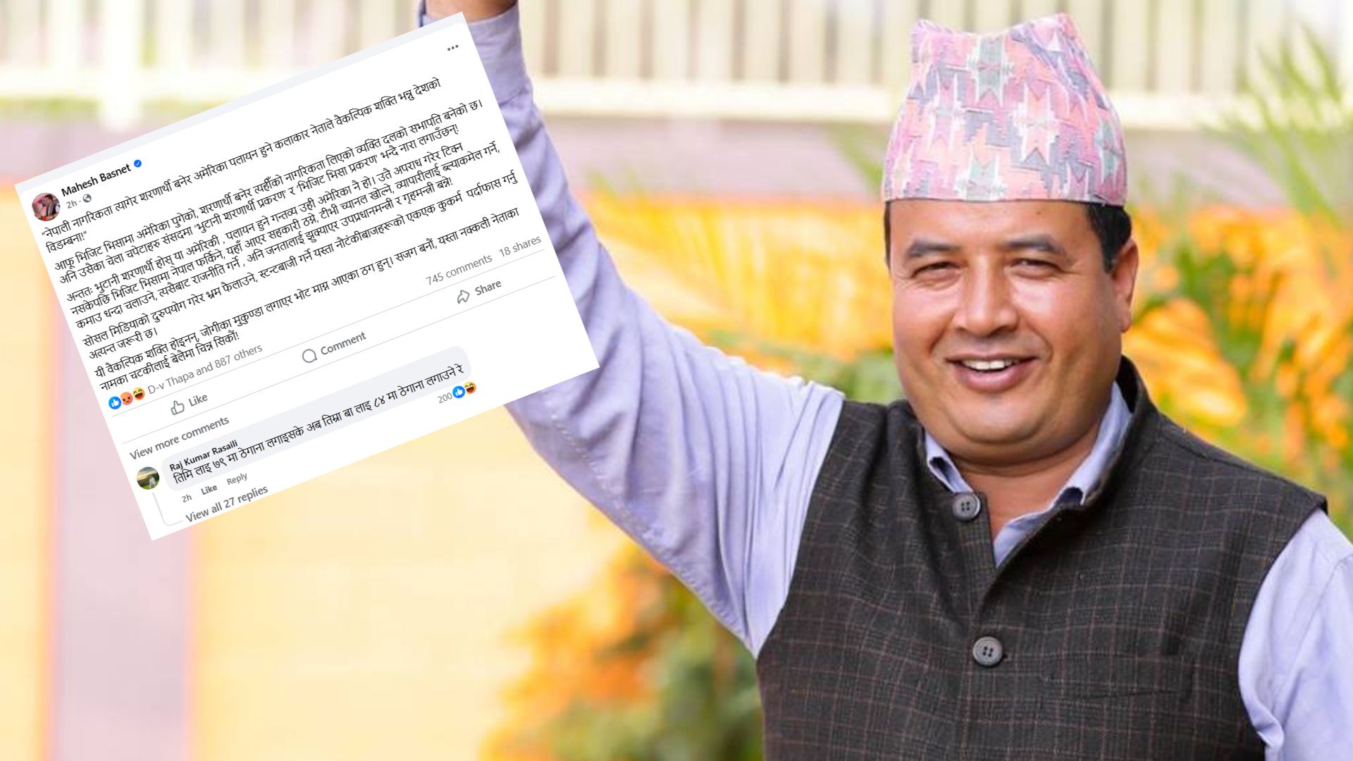 बस्नेतको दाबी अनुसार ती नेता सुरुमा भिजिट भिसामा अमेरिका पुगेका थिए, पछि शरणार्थी बनेर त्यहीँको नागरिकता लिए र अहिले नेपालमा फर्किएर दलको नेतृत्व गरिरहेका छन्।