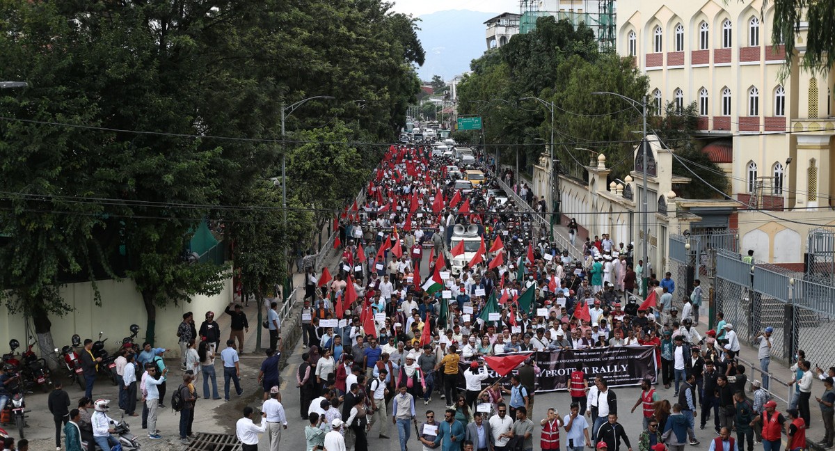 शुक्रबार नेकपा (माओवादी केन्द्र), नेकपा (एकीकृत समाजवादी), राष्ट्रिय जनमोर्चा, नेकपासहित विभिन्न वाम घटकहरूले राजधानीको शान्तिबाटिकाबाट सुरु भएको विरोध जुलुसमार्फत इजरायली आक्रामकता र साम्राज्यवादविरुद्ध आवाज उठाएका हुन्।