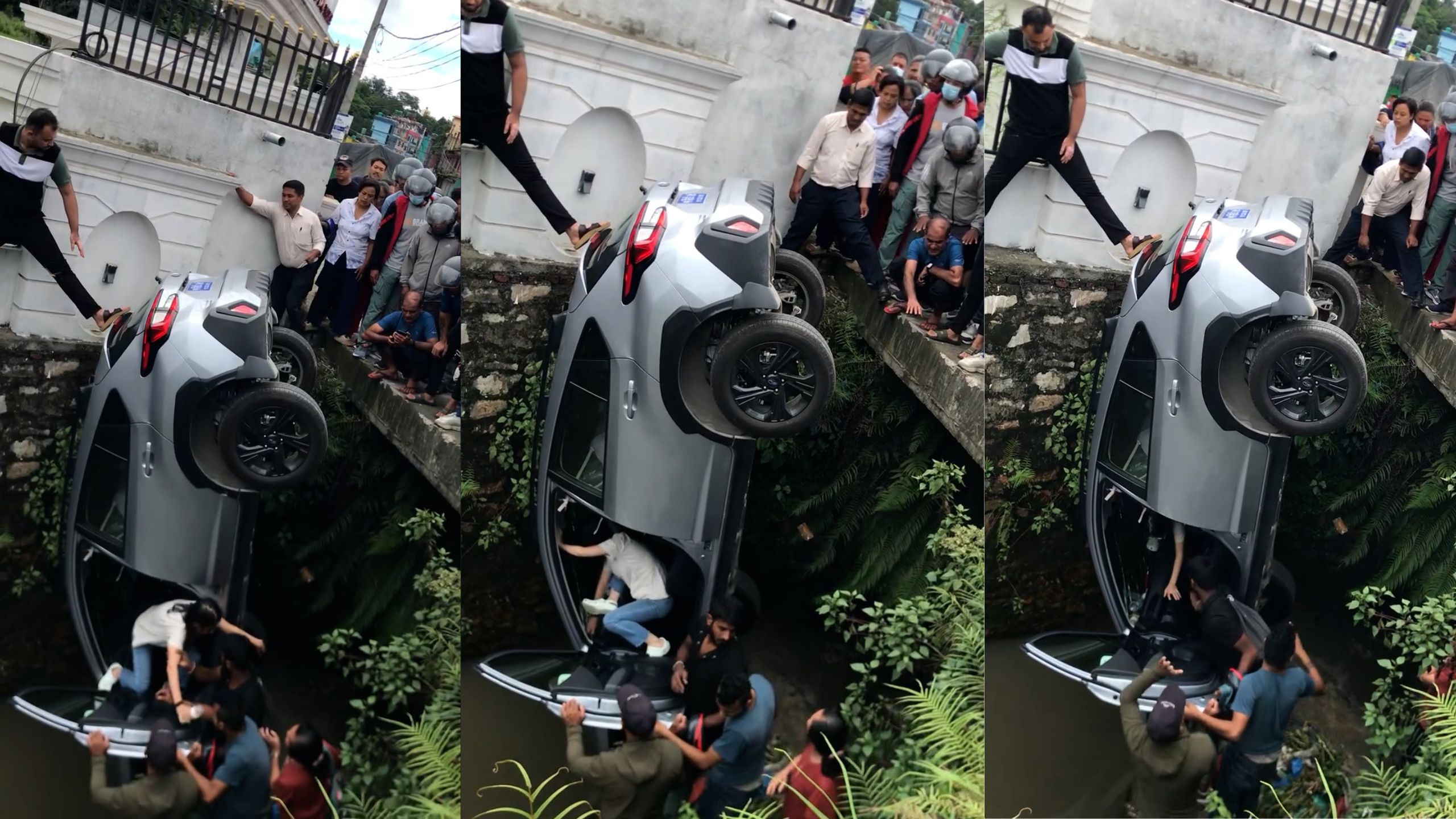 गाडीमा सवार ३४ वर्षीया आमा र उनकी छोरी दुवै जनालाई स्थानीय बासिन्दा र प्रहरीको सहयोगमा उद्धार गरिएको थियो। उनीहरू दूतावासकै कर्मचारी हुन् वा होइनन् भन्ने विषयमा भने स्पष्ट नभएको प्रहरीले जनाएको छ।