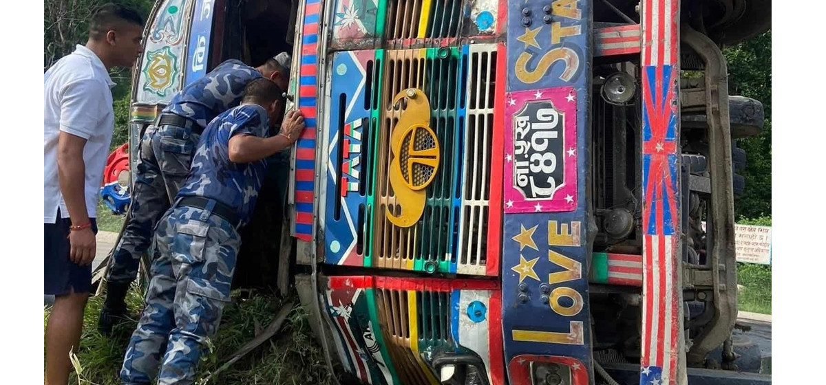 काठमाडाैं । पूर्व–पश्चिम महेन्द्र राजमार्गको गैँडाकोट–१० पितौंजीस्थित सिस्ने खोलामा आइतबार दिउँसो एक ट्रक पल्टिँदा स्कुटर च्यापिएको छ।