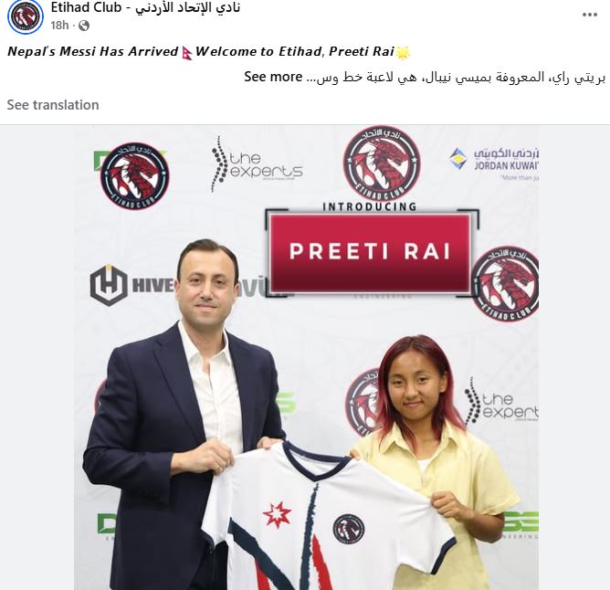 प्रितिले जोर्डन महिला लिगको दुई पटकको च्याम्पियन, इतिहाद क्लबसँग मंगलबार औपचारिक सम्झौता गरेका छन्। क्लबले उनलाई ‘नेपाली मेसी’ भनेर सम्मान गरेको छ।