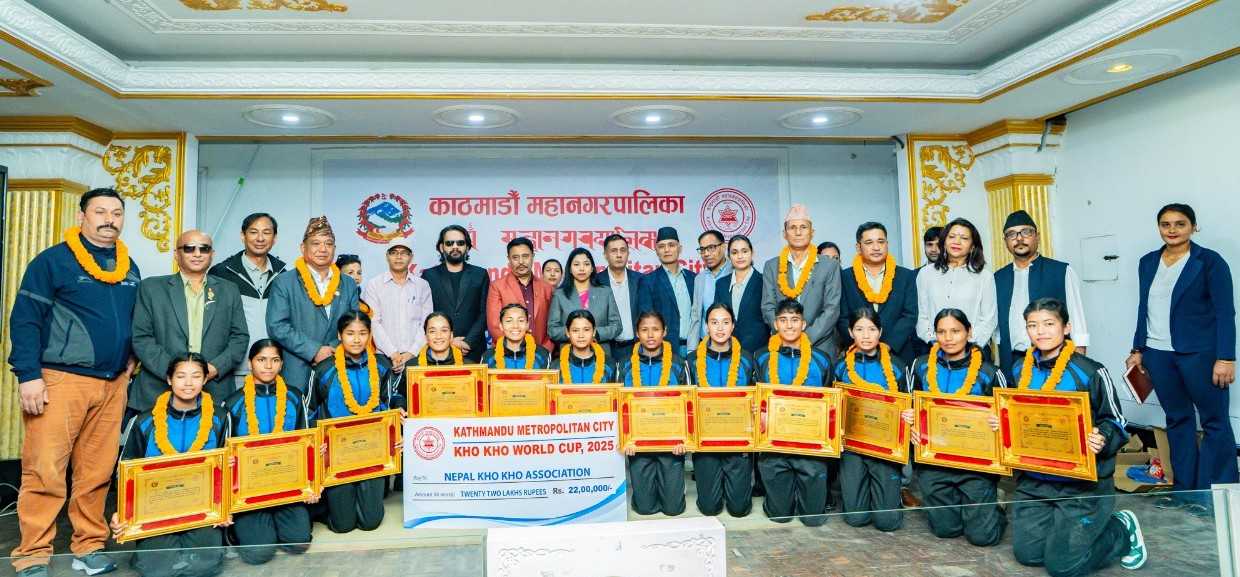 काठमाडौं । काठमाडौं महानगरपालिकाले खोखो विश्वकप प्रतियोगितामा उपविजेता बनेका पुरुष र महिला टोलीलाई ११–११ लाख रुपैयाँ नगद पुरस्कार प्रदान गरेको छ।