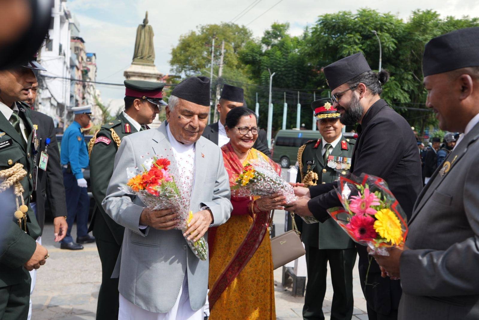 काठमाडौं । राष्ट्रपति रामचन्द्र पौडेल पत्नीसहित शनिबार राजधानीमा सुरु भएको इन्द्रजात्राको रथयात्रा अवलोकन गर्न उपस्थित भए। उनलाई काठमाडौं महानगरपालिकाका मेयर बालेन शाहले स्वागत गरे।