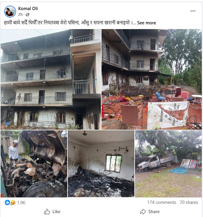 वलीले तुलसीपुरमा सञ्चालन गरेको ‘कोमल होटल’ तोडफोड र आगजनीमा परेपछि सामाजिक सञ्जालमार्फत आफ्नो मनको पीडा सार्वजनिक गरिन्। उनले भनिन्, गाउँलाई रोजगारी दिने, स्थानीय उत्पादनलाई बजारसम्म पुर्याउने र सबैलाई सँगसँगै समृद्धिको बाटोमा अघि बढाउने सपना थियो। तर बीस वर्षअगाडि रेडियो नेपालमा समाचार वाचन र गीत गाएर कमाएको पारिश्रमिकले किनेको जग्गामा बनेको त्यो सपना आज खरानी बनाइयो।