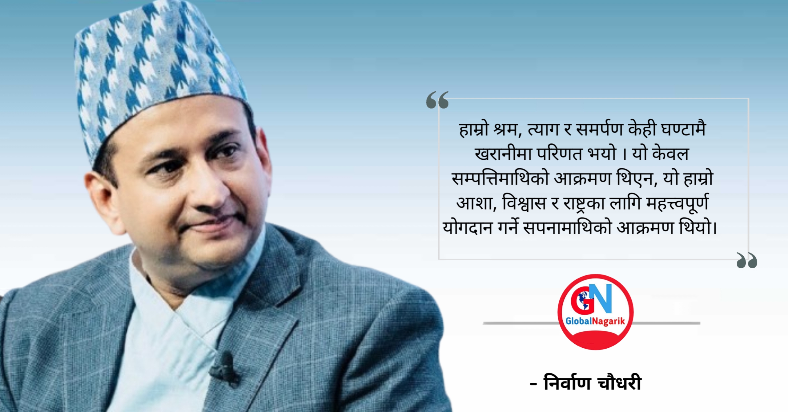 हाम्रो श्रम, त्याग र समर्पण केही घण्टामै खरानीमा परिणत भयो । यो केवल सम्पत्तिमाथिको आक्रमण थिएन, यो हाम्रो आशा, विश्वास र राष्ट्रका लागि महत्त्वपूर्ण योगदान गर्ने सपनामाथिको आक्रमण थियो । राष्ट्रको अर्थतन्त्र ध्वस्त बनाएर खरानी घस्ने कसम खाएकाहरूले गरेको उन्माद थियो ।