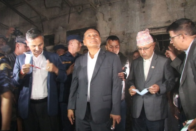काठमाडौं । ‘जेनजी’ आन्दोलनका क्रममा आगजनी भएर क्षतिग्रस्त बनेको सङ्घीय संसद् भवन आज अर्थमन्त्री रामेश्वर खनाल, ऊर्जा, जलस्रोत तथा सिँचाइ, भौतिक योजना तथा यातायात तथा सहरी विकासमन्त्री कुलमान घिसिङ र गृह तथा कानुनमन्त्री ओमप्रकाश अर्यालले संयुक्त रूपमा अवलोकन गरेका छन्।