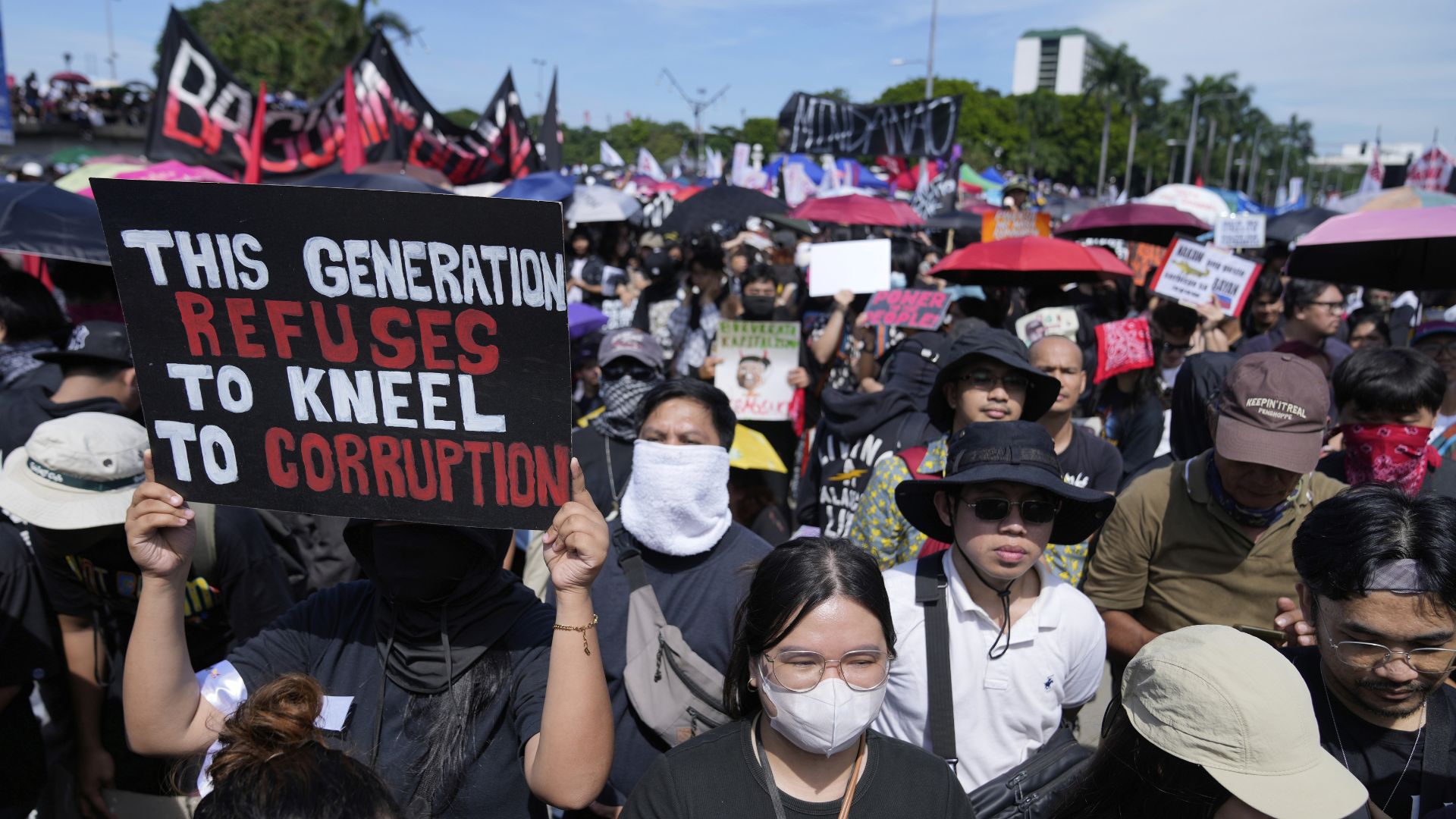 एजेन्सी ।  सांसद, अधिकारी र व्यवसायीहरू संलग्न भएको भनिएको बाढी नियन्त्रण परियोजनाको ठूलो घुसघोरी प्रकरणले आक्रोश बढेपछि आइतबार हजारौँ प्रदर्शनकारीहरू फिलिपिन्सको राजधानी मनिलामा सडकमा उत्रिएका छन् ।