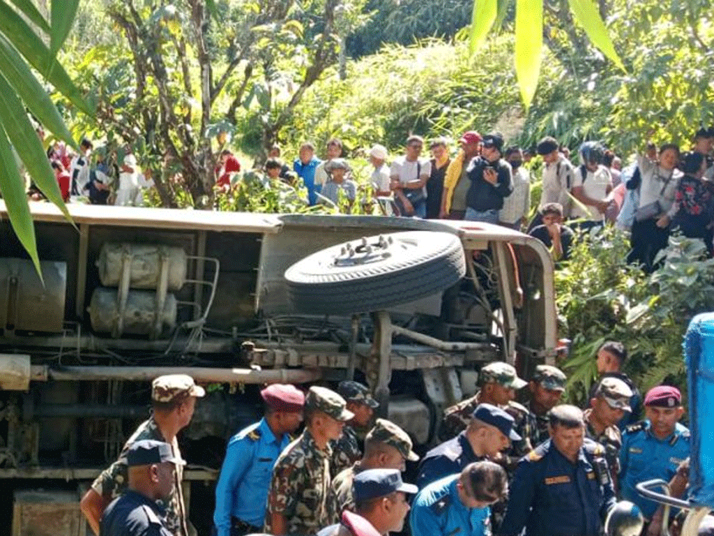 प्रदेश १०२००१ ख ९६०६ नम्बरको बस दुर्घटना हुँदा महालक्ष्मी-७ की ५५ वर्षीया गंगा कार्की र ६० वर्षीय डिल्ली बरालको मृत्यु भएको प्रहरीले जनाएको छ ।