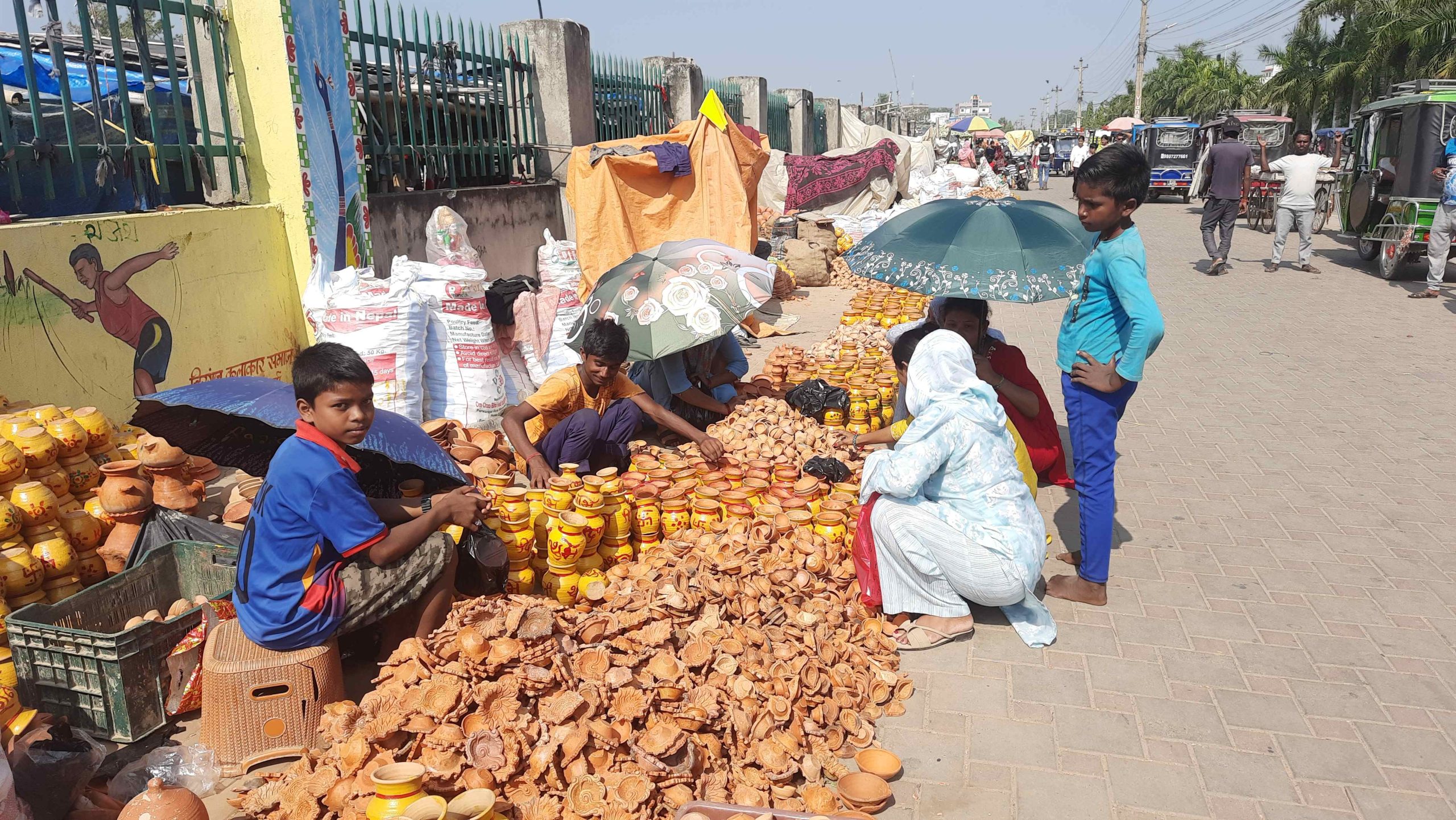 प्रजापतिले दसैँको टीकापछि छठसम्मको अवधिमा माटाका विभिन्न थरिका सरसामान बिक्री गर्दै आइरहेको बताए । सडकमा माटोबाट बनाइएका दियो, घैला, नदिया, खपरी, ढकनालगायत माटाका सरसामान बेचबिखन गर्दै आइरहेका छन् । त्यस्तै वीरगञ्जको घण्टाघरसँगै रहेको बिपी उद्यानको फुटपाथमा माटाका भाँडा बेच्दै आइरहेका बिर्जु पडित प्रजापतिले पनि यस वर्ष दीपावलीमा प्रयोग हुने पाला तथा दियोको व्यापारमा कमी आएको गुनासो गरे ।