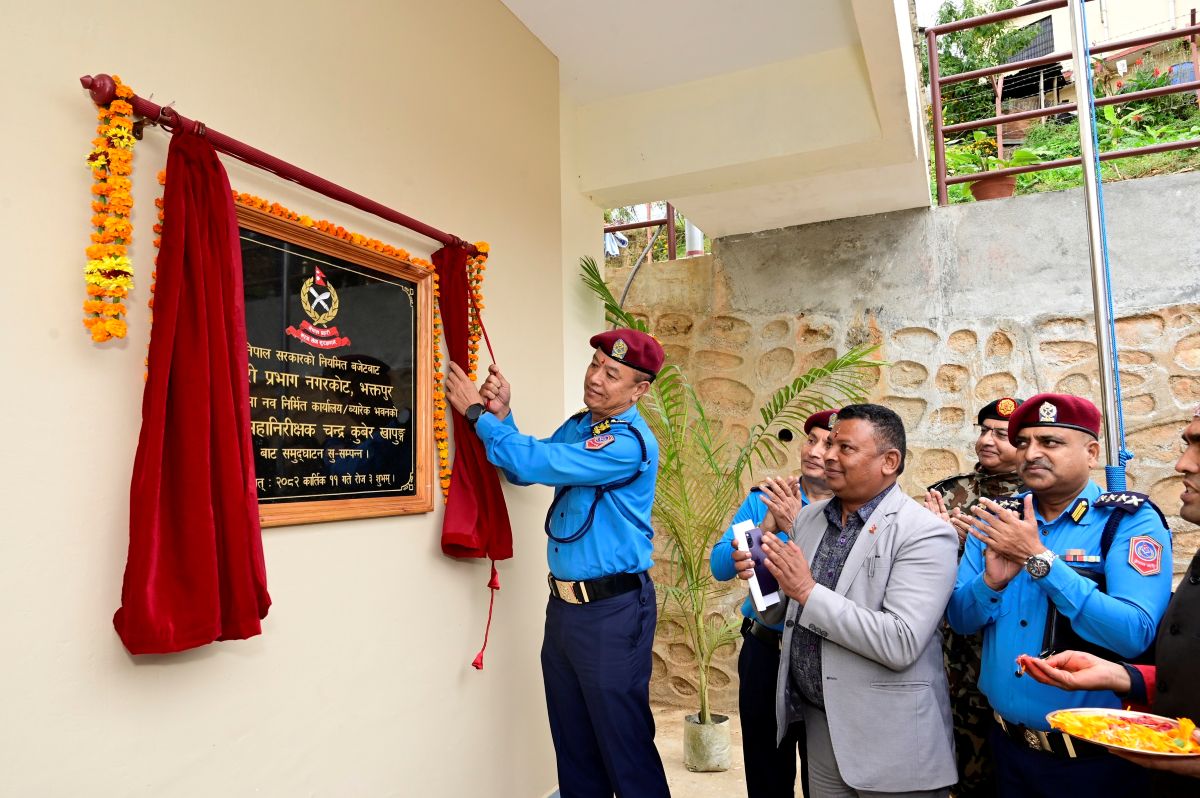 काठमाडौँ । प्रहरी प्रभाग नगरकोटको नवनिर्मित भवन सञ्चालनमा आएको छ । मङ्गलबार आयोजित एक कार्यक्रमबीच प्रहरी महानिरीक्षक चन्द्रकुबेर खापुङ्गले सो भवनको उद्घाटन गरेका हुन् । साथै उनले उक्त नवनिर्मित भवनको अवलोकन गर्नुका साथै कार्यालय परिसरमा वृक्षारोपण समेत गरेका छन् ।