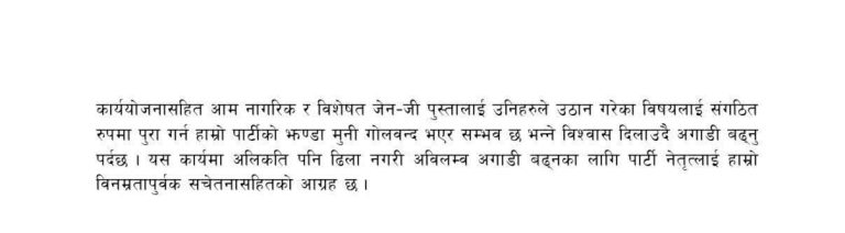 झाँक्रीले लेखेकी छन्, ‘विचार र राजनीतिमा संगठित नहुँदाको कारणले जेन-जी आन्दोलन अरूले हाइज्याक गरे। तपाईंहरूको प्रयास ठिक दिशामा छ। मिल्नेहरू जोडिँदै जान्छन्, नमिल्नेहरू छोडिँदै जान्छन् – यो अभियान हो, आत्तिनु पर्दैन। अगाडि बढ्नुस्, मेरो सधैं साथ र शुभकामना छ।’