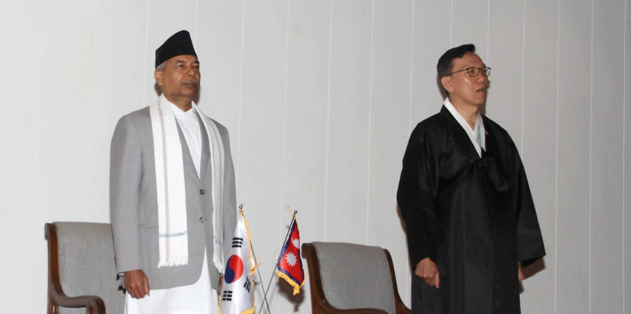 काठमाडौँ । उपराष्ट्रपति रामसहायप्रसाद यादव गणतन्त्र कोरियाको राष्ट्रिय दिवसका अवसरमा बुधबार साँझ यहाँ आयोजित स्वागत समारोहमा सहभागी भएका छन् ।