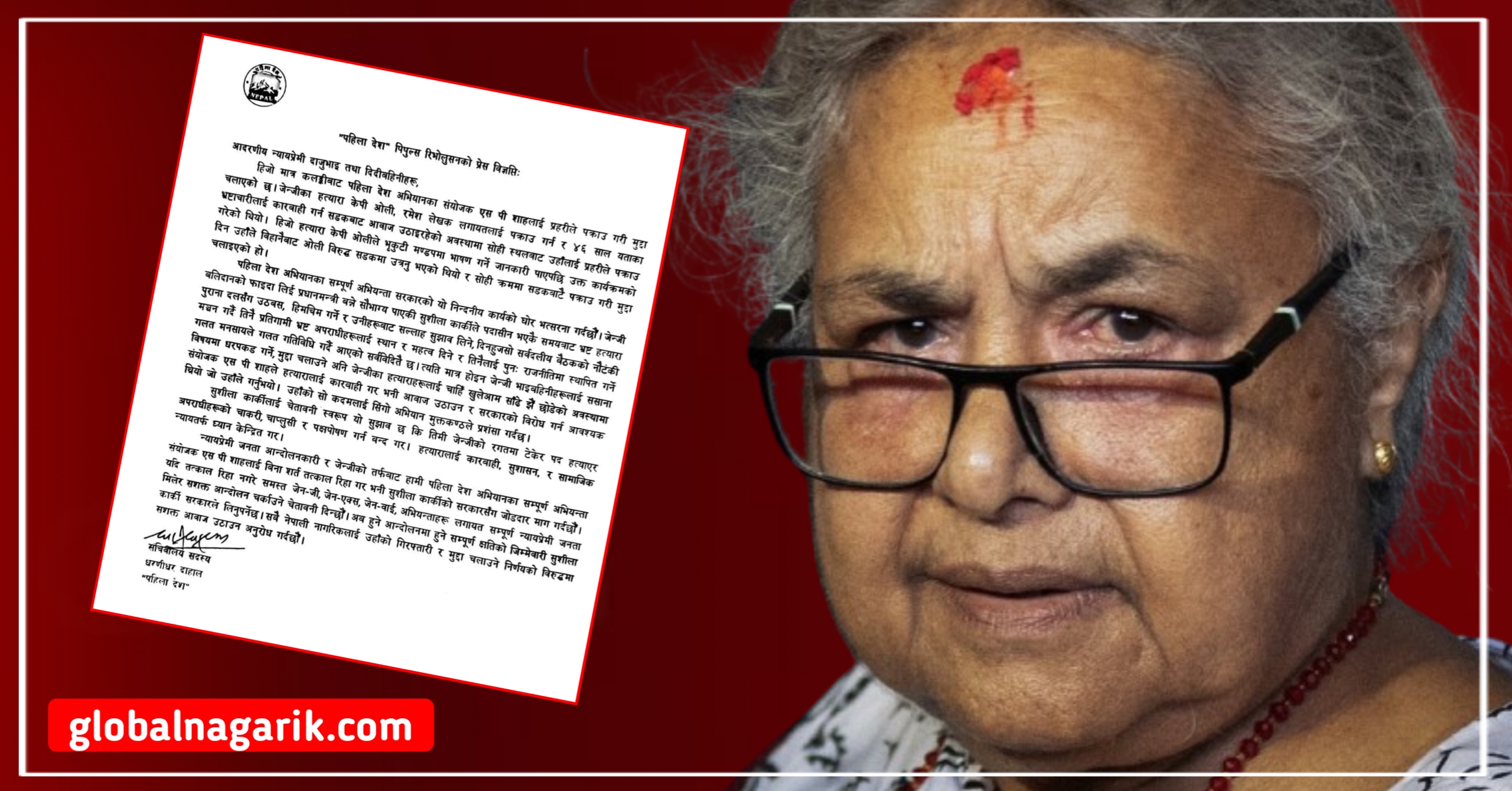 अभियानले सुशीला कार्कीमाथि लक्षित गर्दै भनेको छ, “जेनजीको बलिदानबाट सत्तामा पुगेकी कार्की सरकारले सर्वदलीय बैठक र सत्ता–सम्झौताका नाममा पुराना भ्रष्ट–हत्यारा नेटवर्कसँग मिलेमतो गर्दै उनीहरूलाई पुनः स्थापित गर्ने गतिविधि चलाइरहेको छ।”