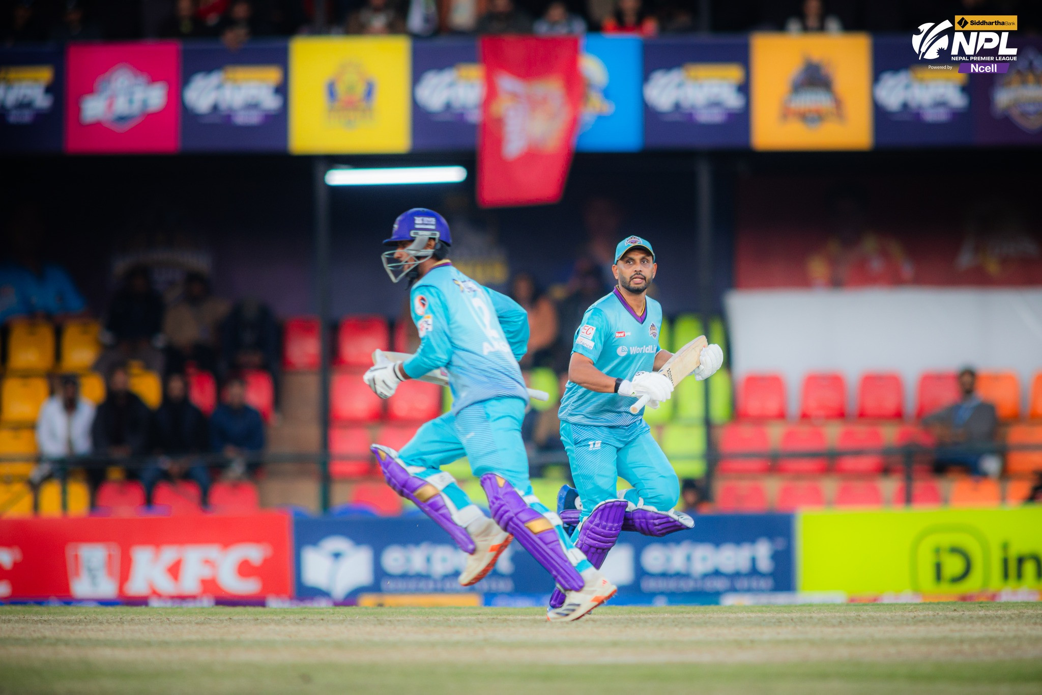 काठमाडौको सुरुवात निकै खराब रह्यो। ओपनर बेन चार्ल्सवर्थ (०) इनिङको दोस्रो ओभरमै र राशिद खान (१४) पाँचौँ ओभरमा आउट हुँदा टोली दबाबमा परेको थियो।
