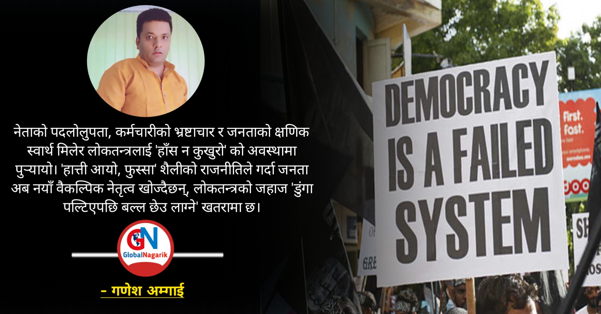 ‘Gen Z’ ले सामाजिक सञ्जालमा ‘चोरका खुट्टा काट् भन्दा चोर आफै गर्जियो’ भनेझै, व्यवस्थाको असन्तुष्टि पोखिरहेका छन्। डा. गोविन्द केसीको अनशन वा अन्य नागरिक आन्दोलनहरूले के सिद्ध गर्छन् भने, जब दलहरू ‘कुम्भकर्णको निद्रा’ मा सुत्छन्, तब जनता सडकबाट जाग्छन्। दलहरूको काम गराइप्रति वितृष्णा बढेपछि ‘भेडा जति भए पनि गोठालो एउटै’ जस्तो सामूहिक सक्रियतामा कमी आएको छ। जनताको चेतना त छ, तर दलहरूको उदासीनता र कर्मचारीको ढिलासुस्तीले ‘खोला तर्यो लौरो बिर्सियो’ को अवस्था बनाएको छ। नागरिकहरूले आफूलाई ‘सधैको लागि ठगिने’ पात्र मात्र मान्न छोड्नुपर्छ, र ‘घरको मियो नचल्ने’ अवस्था आउन दिनु हुँदैन।
