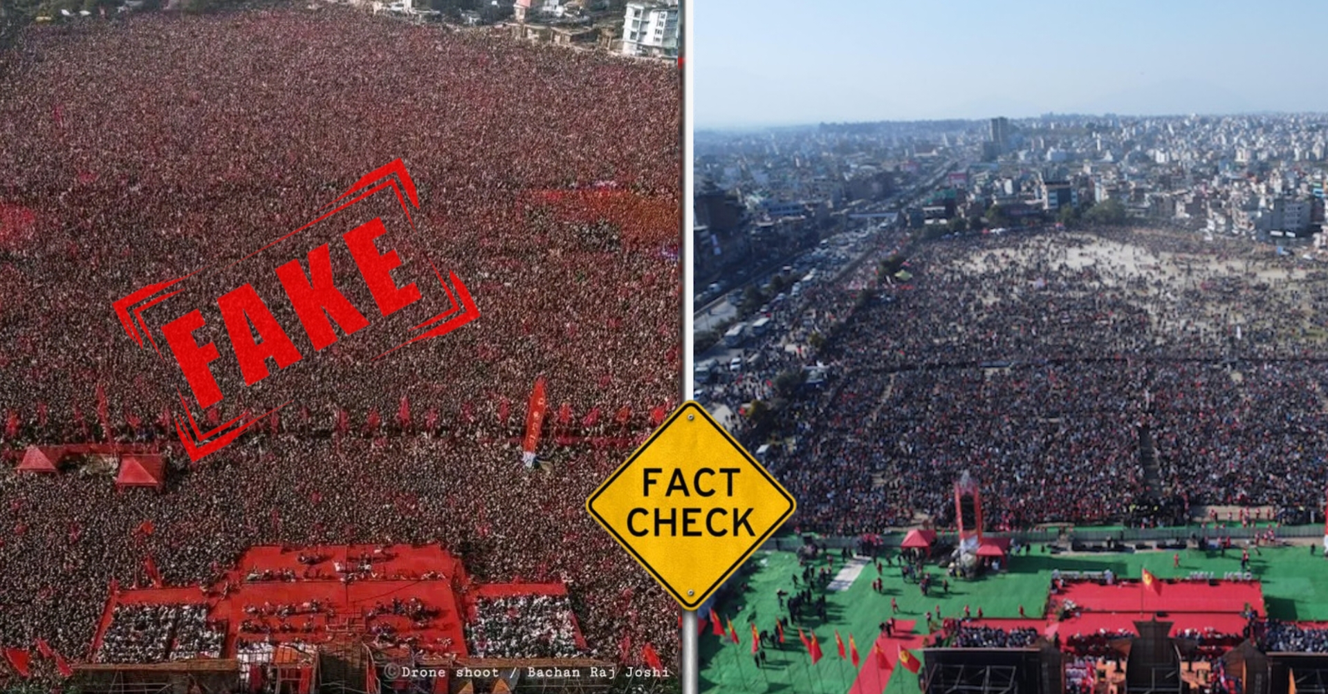 ✔️ तथ्य : तस्बिर AI/Photo Manipulation प्रयोग गरी भीड कृत्रिम रूपमा बढाइएको —सत्य