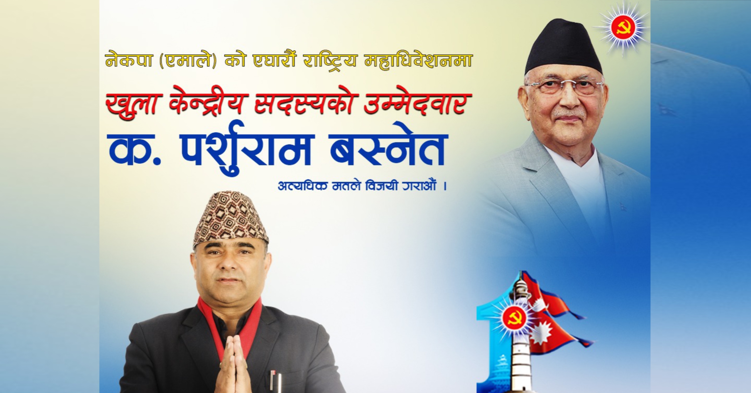 काठमाडौं । नेपाल खेलकुद महासंघका केन्द्रीय अध्यक्ष पर्शुराम बस्नेतले नेकपा एमालेको काठमाडौँमा जारी ११औँ राष्ट्रिय महाधिवेशनमा खुला केन्द्रीय सदस्य पदमा उम्मेदवारी दिएका छन्। आज ११औँ राष्ट्रिय महाधिवेशनको बन्द सत्र स्थल भृकुटी मण्डपमा बस्नेतले उम्मेदवारी दर्ता गराएका हुन्।