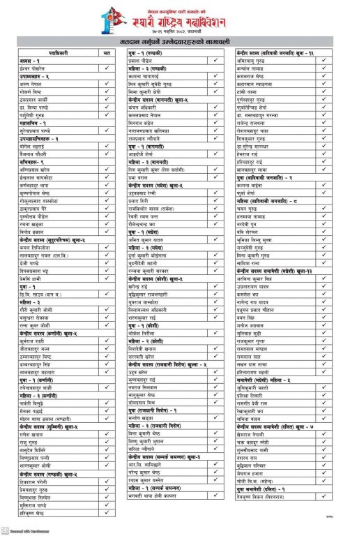 ईश्वर पोखरेल पक्षले पार्टीको ३०१ उम्मेदवार प्रस्तुत गरेको छ, जसमा विभिन्न विभाग र प्रदेशका प्रतिनिधिहरू पनि समावेश छन्।