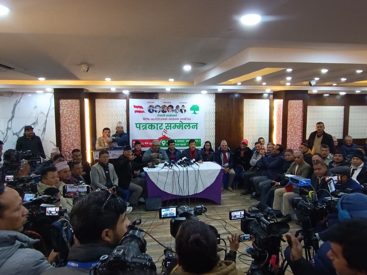 तर विशेष महाधिवेशन घोषणा गरिएको उक्त कार्यक्रममा पुस मसान्तभित्रै विशेष महाधिवेशन गरिने भन्दै आएका महामन्त्रीद्वय थापा र शर्मा, सहमहामन्त्री मन्सुर तथा कार्यसम्पादन समिति सदस्य अर्जुननरसिंह केसी र जीवन परियार (रेग्मी) उपस्थित देखिएनन्।