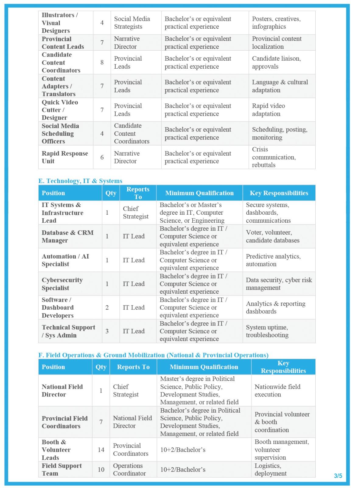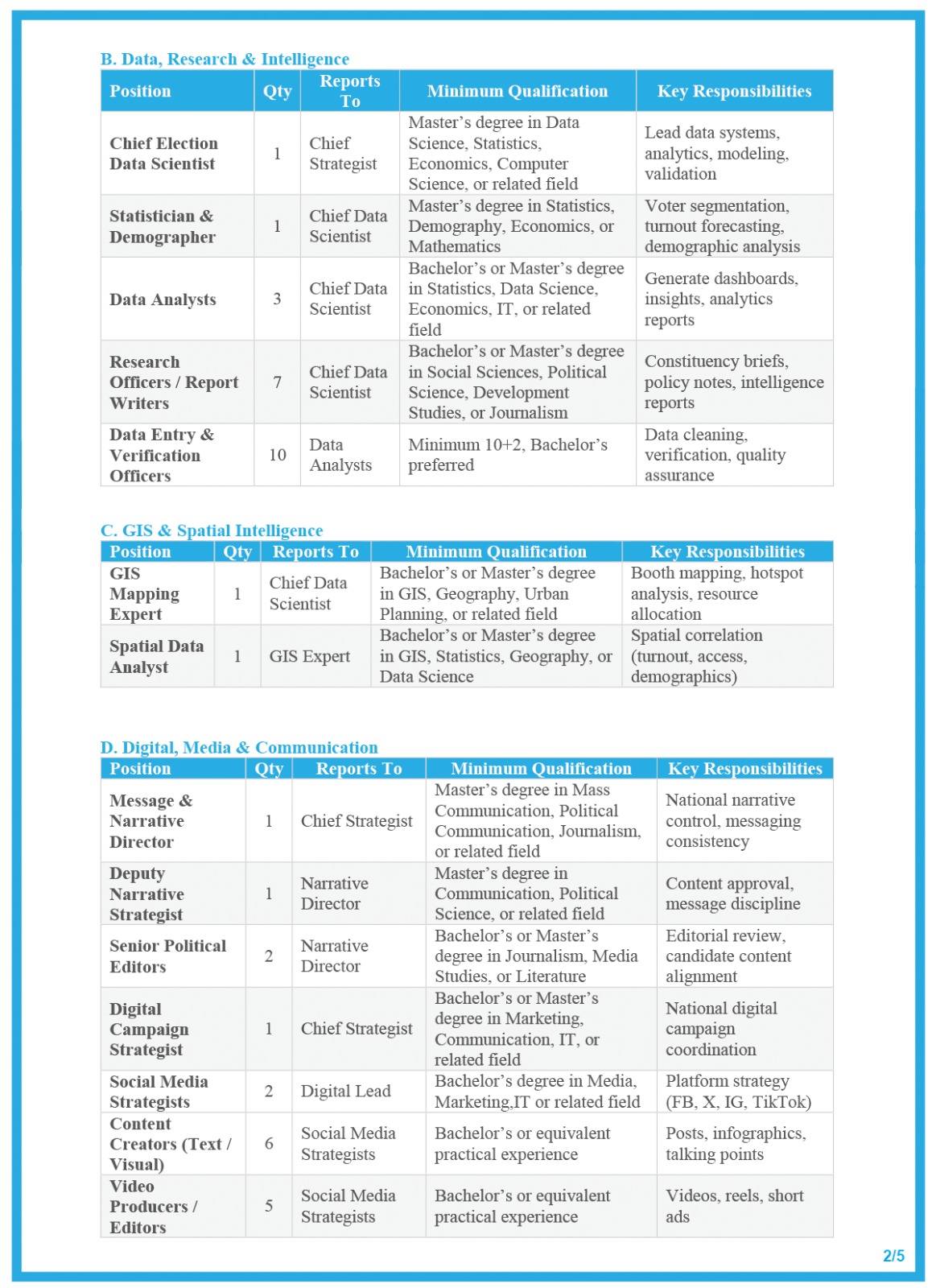 आगामी फागुन २१ गते हुने प्रतिनिधिसभा निर्वाचनलाई लक्षित गर्दै तथ्याङ्क–आधारित निर्णय, रणनीतिक समन्वय, छिटो प्रतिक्रिया र प्रविधिमा आधारित डिजिटल क्याम्पेन रुम सञ्चालनका लागि कर्मचारी माग गरिएको पार्टीले जनाएको छ।