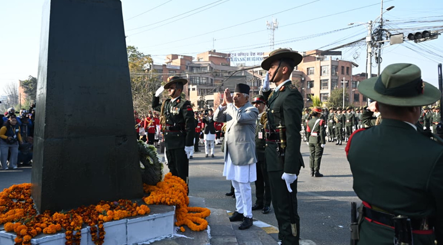 कार्यक्रम स्थलमा राष्ट्रपति पौडेलको आगमनसँगै नेपाली सेनाको एक टुकडीले सम्मानस्वरूप सलामी अर्पण गरेको थियो। उक्त समारोहमा उपराष्ट्रपति, प्रधानमन्त्री, प्रधानन्यायाधीश, राष्ट्रियसभाका अध्यक्षलगायत विभिन्न संवैधानिक अंगका प्रमुख तथा विशिष्ट व्यक्तिहरूको उपस्थिति रहेको थियो।