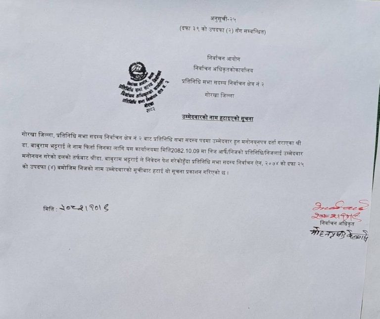 डा. भट्टराईले गोरखा क्षेत्र नम्बर–२ बाट उम्मेदवारी दर्ता गराएका थिए, तर पछि फिर्ता लिएका थिए। निर्वाचन अधिकृत मोहनप्रसाद बेल्वासेका अनुसार, उम्मेदवारी फिर्ता लिएपछि आयोगले औपचारिक रूपमा भट्टराईको नाम सूचीबाट हटाएको हो।