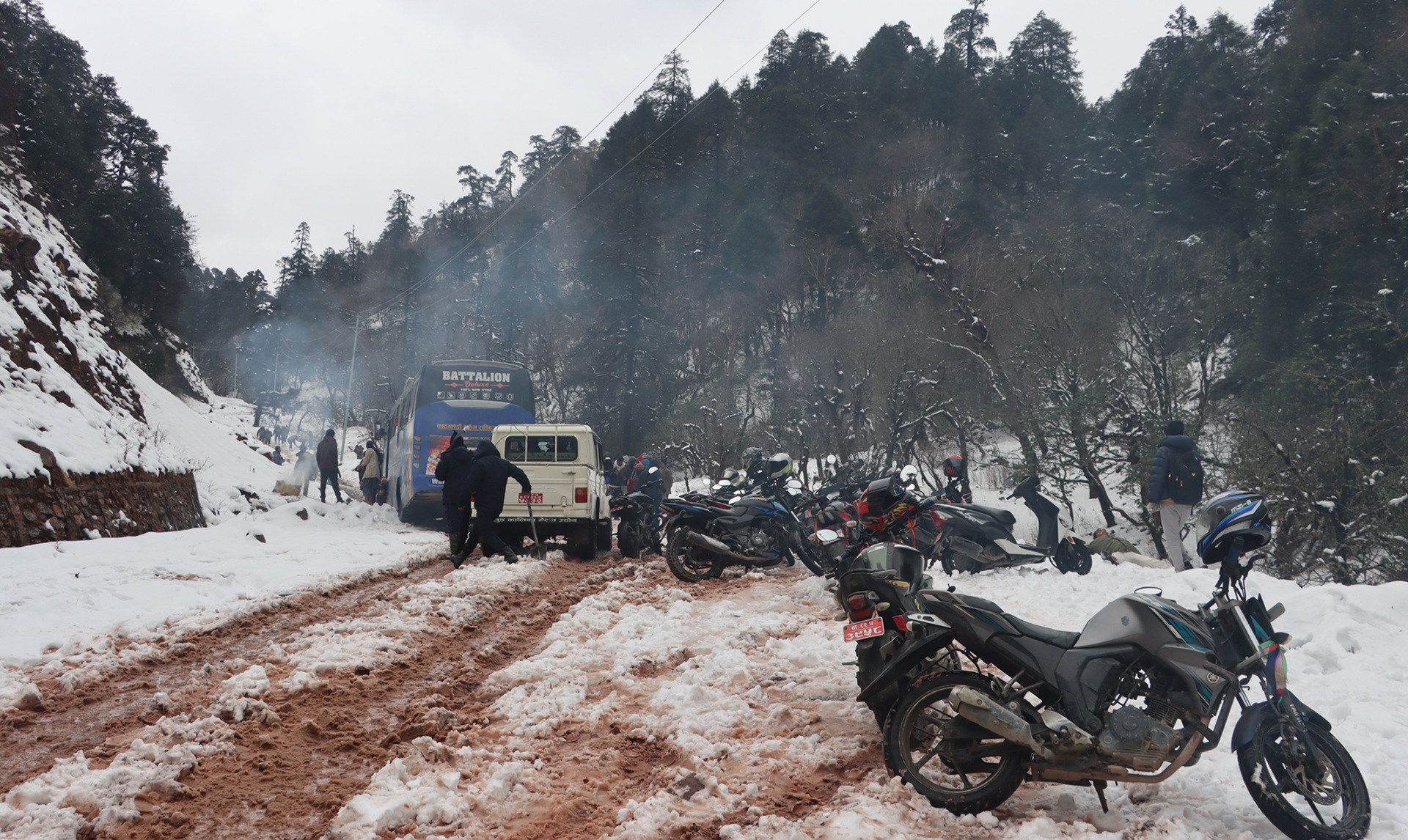 काठमाडाैं । रुकुम पूर्वमा हिमपातका कारण मध्यपहाडी लोकमार्ग अवरुद्ध भएको छ । हिमपातका कारण लोकमार्गको लुकुम–पातिहाल्ना खण्ड अवरुद्ध भएको जिल्ला प्रहरी कार्यालय रुकुम पूर्वले जानकारी दिएको छ ।