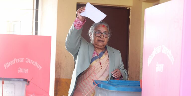 काठमाडौं । प्रधानमन्त्री सुशीला कार्कीले काठमाडौं क्षेत्र नं ५ स्थित धापासी निमावली फैमालचुली मतदान केन्द्रबाट आफ्नो मताधिकार प्रयोग गरेकी छन् ।