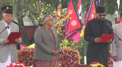 काठमाडौं । रास्वपाका वरिष्ठ नेता बालेन शाह (बालेन्द्र)ले १२ः३२ को शुभसाइतमा प्रधानमन्त्री पदको शपथ लिएका छन् । राष्ट्रपति रामचन्द्र पौडेलले उनलाई शुक्रबार पद तथा गोपनीयताको शपथ दिलाएका हुन् । बालेनले शपथ लिनका लागि यसअघि नै राष्ट्रपति कार्यालयमा शुभसाइत पठाएका थिए ।
