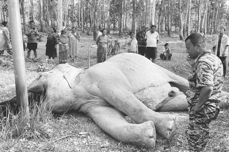 काठमाडौं । कमल गाउँपालिका–३ स्थित रतुवामाई वृक्षारोपण आयोजनाको जंगलमा करेन्ट लागेर एक जंगली हात्तीको मृत्यु भएको छ। गएराति उक्त हात्तीले जंगलभित्र गाडिएको फलामको बिजुली पोलमा धक्का दिएको बताइएको छ। धक्का दिँदा माथिल्लो लाइनमा सर्ट सर्किट भएर करेन्ट प्रवाह हुँदा हात्तीको सूँढ र एक दाँत जलेको