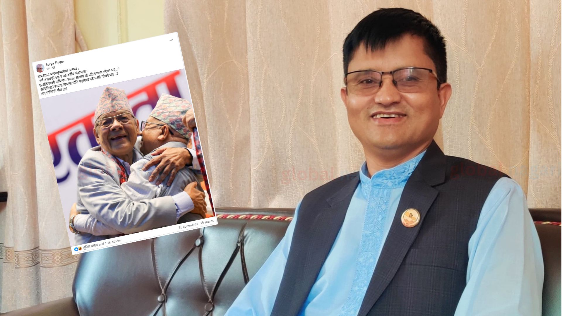 काठमाडौं । नेकपा एमालेका नेता तथा सासंद सुर्य थापाले पूर्वप्रधानमन्त्री माधवकुमार नेपाल र पूर्वउपप्रधानमन्त्री वामदेव गौतमबीचको पछिल्लो राजनीतिक निकटतामाथि सामाजिक सञ्जालमार्फत कटाक्ष गरेका छन्। शनिबार फेसबुकमा लेख्दै थापाले दुई वरिष्ठ नेताबीचको आत्मीयता र अंकमाललाई “अर्थ न बर्थको अभिनय” भन्दै व्यङ्ग्य गरेका हुन्। “वामदेवमा माधवकुमारको आनन्द