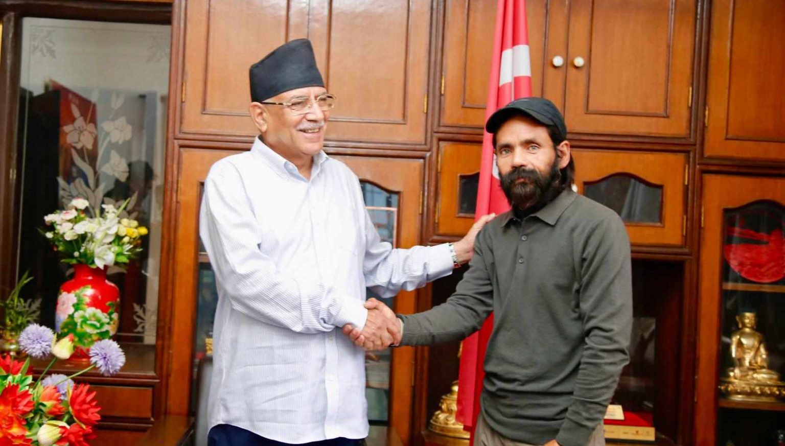 काठमाडौं । कर्णालीको समग्र विकास, वातावरण संरक्षण तथा सुशासनको माग गर्दै सुर्खेतबाट पैदल यात्रा सुरु गरेका सामाजिक अभियन्ता नवराज बोहरा राजधानी काठमाडौं आइपुगेपछि नेपाल कम्युनिस्ट पार्टी (माओवादी केन्द्र) का अध्यक्ष पुष्पकमल दाहाल ‘प्रचण्ड’सँग भेट गरेका छन्। एक महिनासम्म नाङ्गो खुट्टामा यात्रा गर्दै काठमाडौं आइपुगेका बोहराले