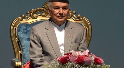काठमाडौं । राष्ट्रपति रामचन्द्र पौडेल नेकपा (एमाले) का अध्यक्ष केपी शर्मा ओलीको आगामी निर्वाचनमा सहभागी नहुने घोषणाप्रति असन्तुष्ट देखिएका छन् । शनिबार शीतलनिवासमा बौद्धिक समुदायका अगुवाहरूसँग भएको छलफलका क्रममा राष्ट्रपति पौडेलले एमाले अध्यक्ष ओलीको पछिल्लो अभिव्यक्तिबारे असन्तुष्टि व्यक्त गरेका हुन् । एमाले अध्यक्ष ओलीले शुक्रबार