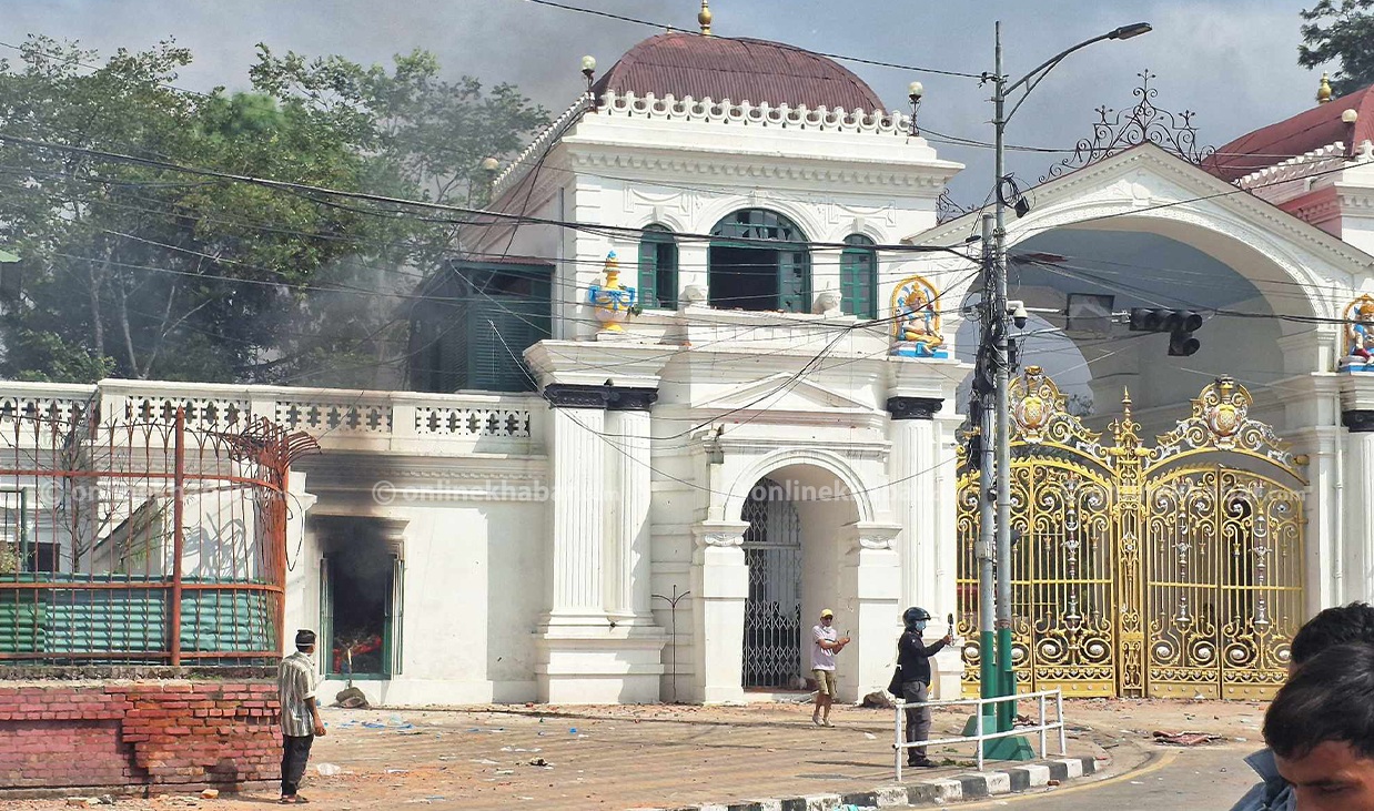 प्रदर्शनकारीले लगाए सिंहदरबारमा आगो